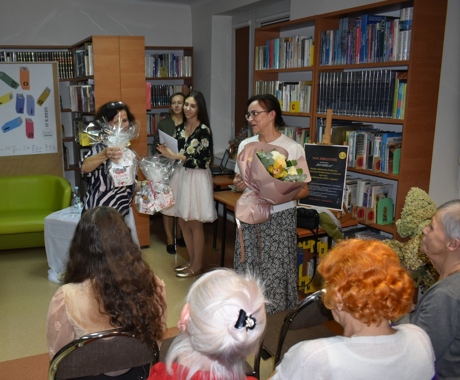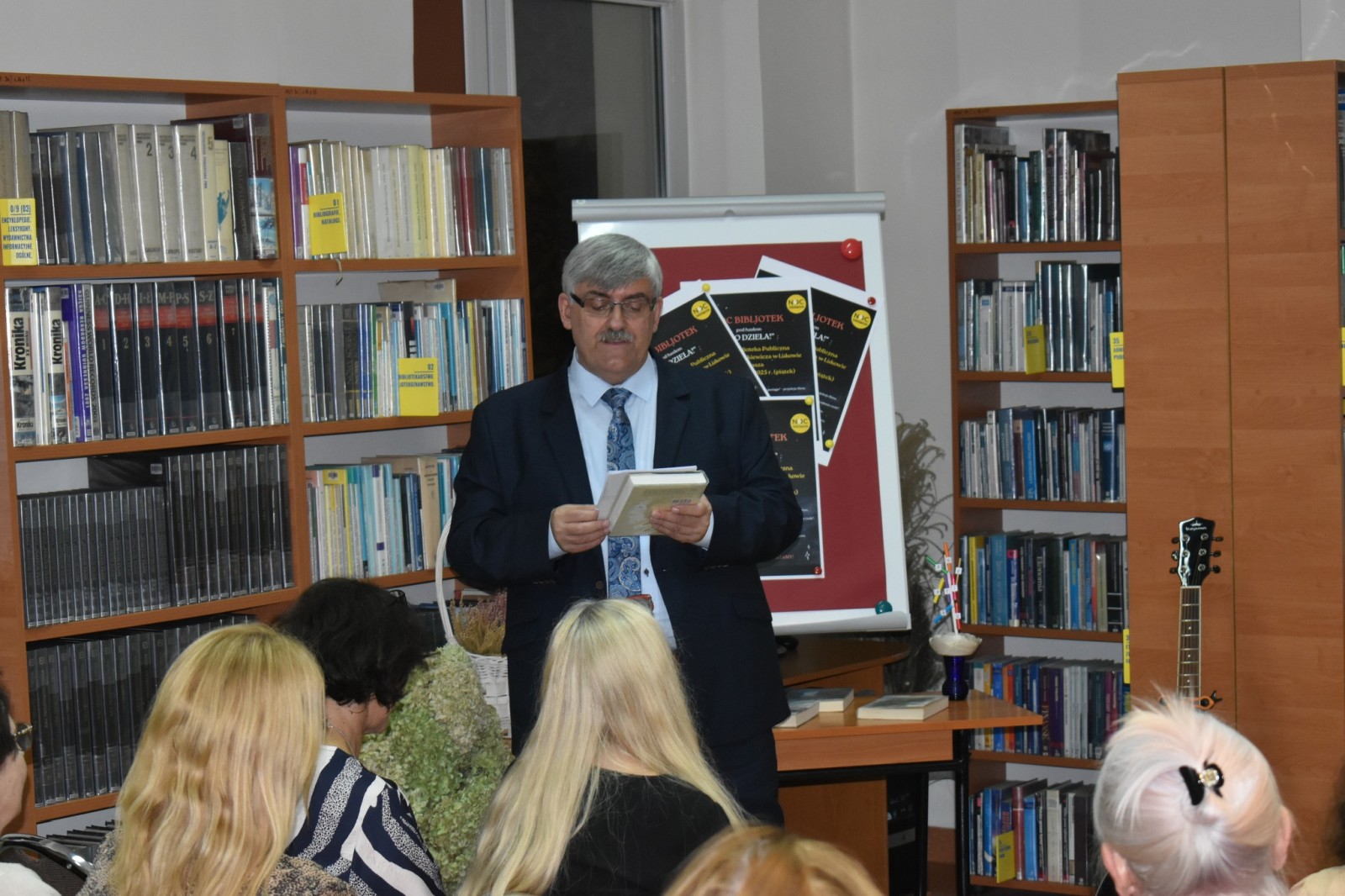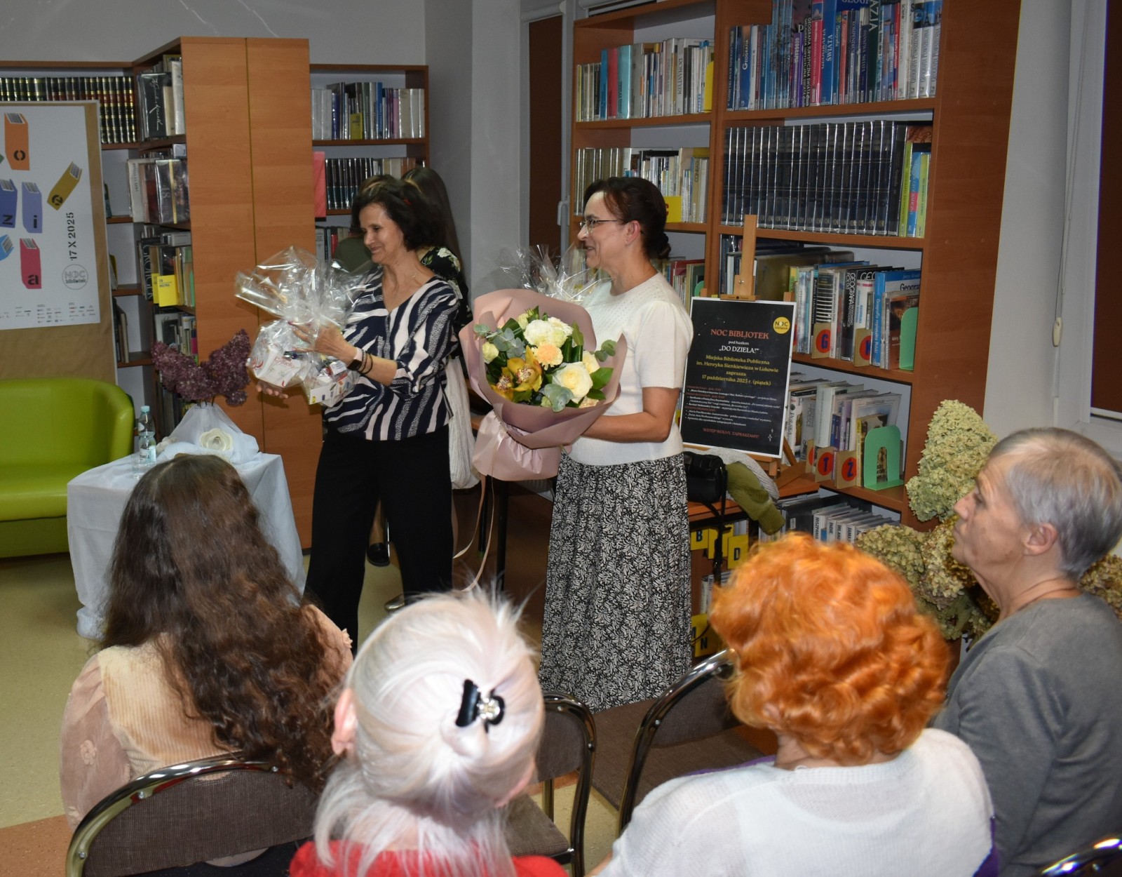 Bibliotekarze, jak co roku, przygotowali bogaty program skierowany zarówno do najmłodszych czytelników, jak i do dorosłej publiczności. Dzieci uczestniczyły w projekcji filmu z popularnej serii „Biuro Detektywistyczne Lassego i Mai” – tym razem był to tytuł „Rabuś z pociągu”. Po seansie najmłodsi wzięli udział w zabawie w poszukiwanie skarbu, która dostarczyła im wiele emocji i radości. Z kolei dla dorosłych czytelników przygotowano spotkanie autorskie z Ewą Szymańską, autorką książek „Po tamtej stronie rzeki”, „Niedokończony list” oraz rodzinnej sagi „Bo trzeba żyć”. Publiczność licznie zadawała pytania, wykazując się świetną znajomością twórczości pisarki. Sama autorka z sympatią i otwartością odpowiadała na wszystkie pytania, co spotkało się z ciepłym przyjęciem uczestników spotkania.
